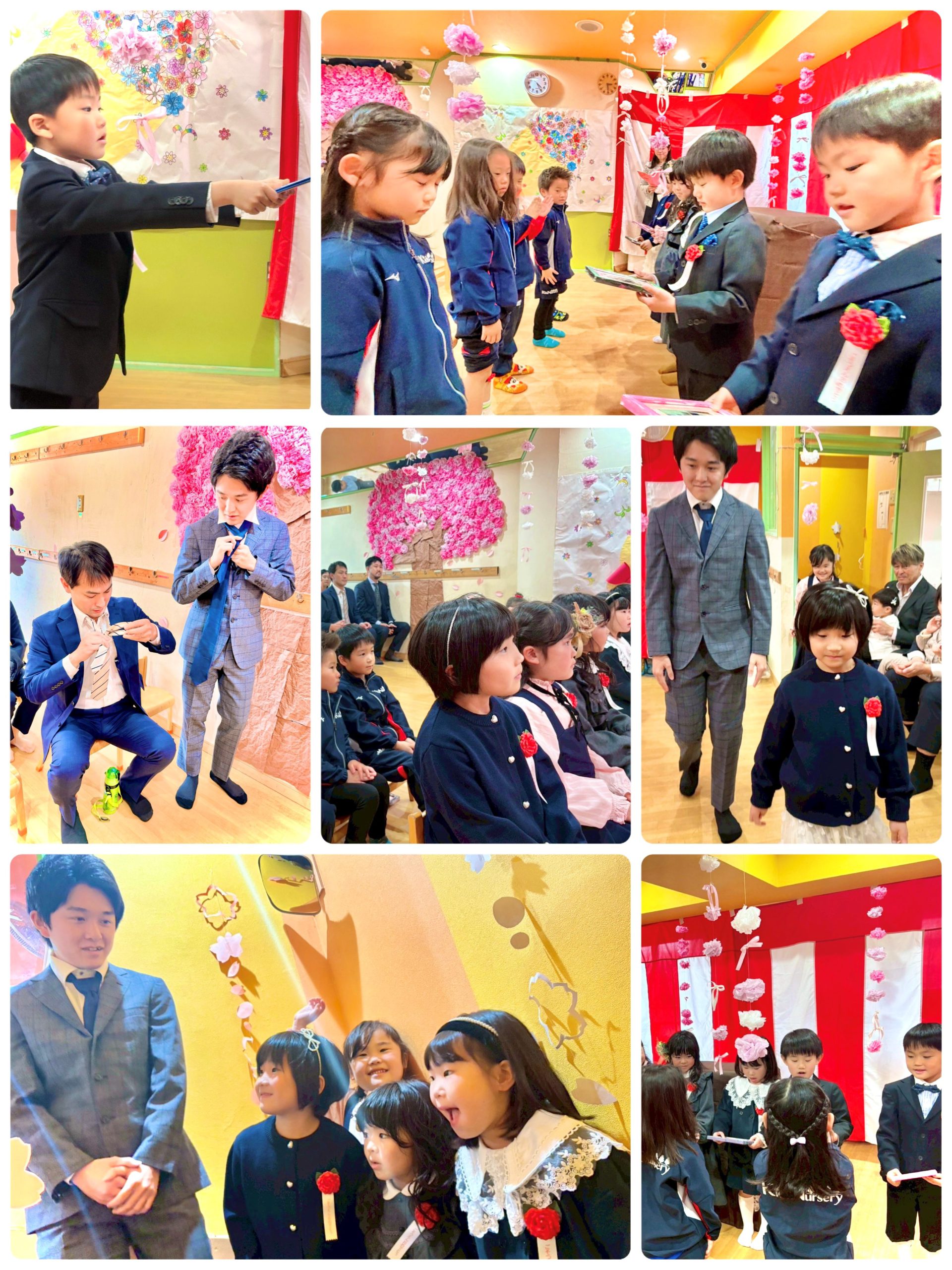 かっこいいスーツやワンピース姿で現れた卒園児さんに、
