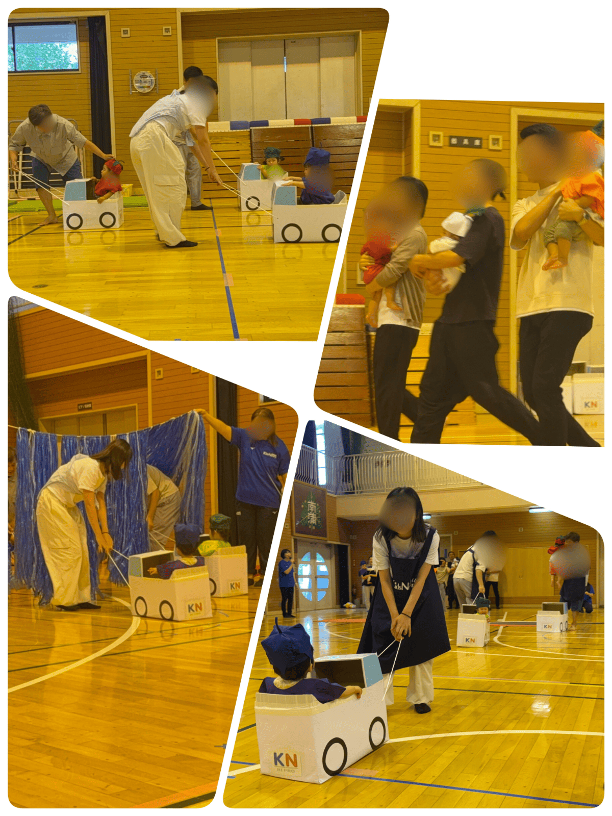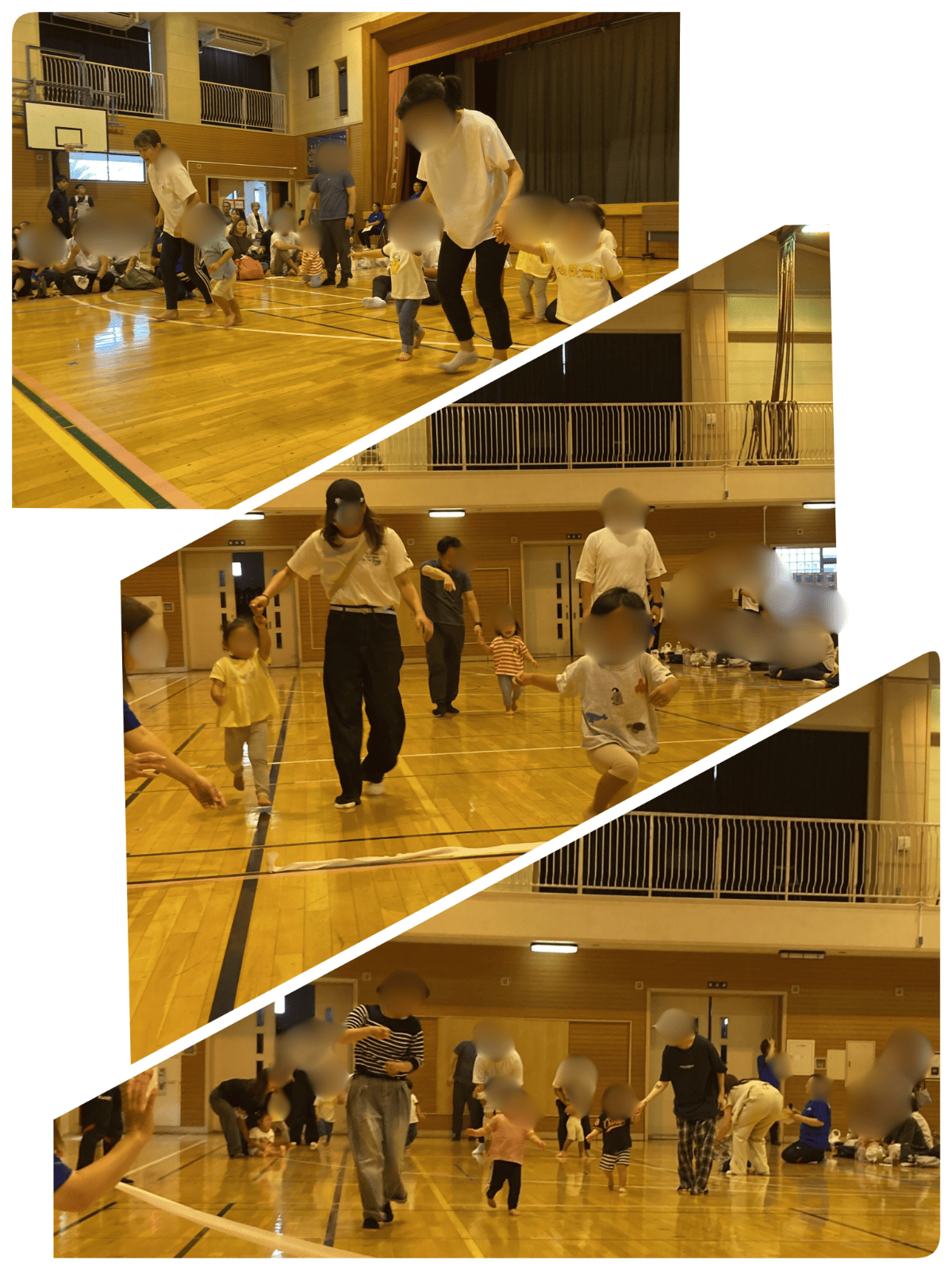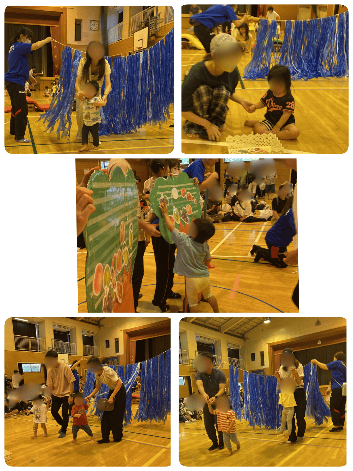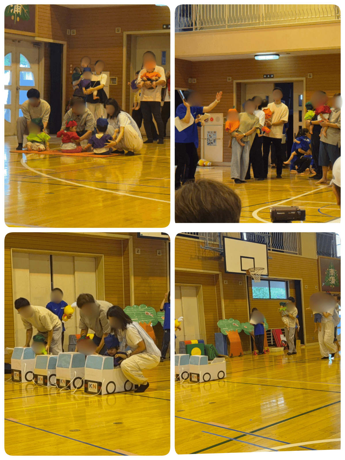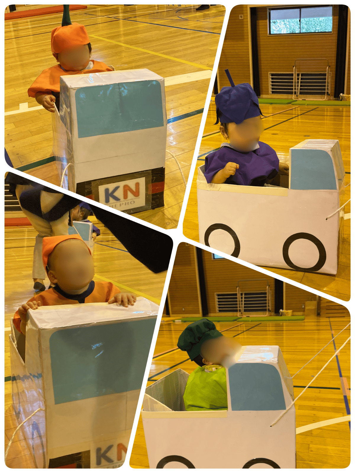 「秋のくだものを見付ける冒険」と言うストーリーでの親子競技から、最後はかけっことなります。