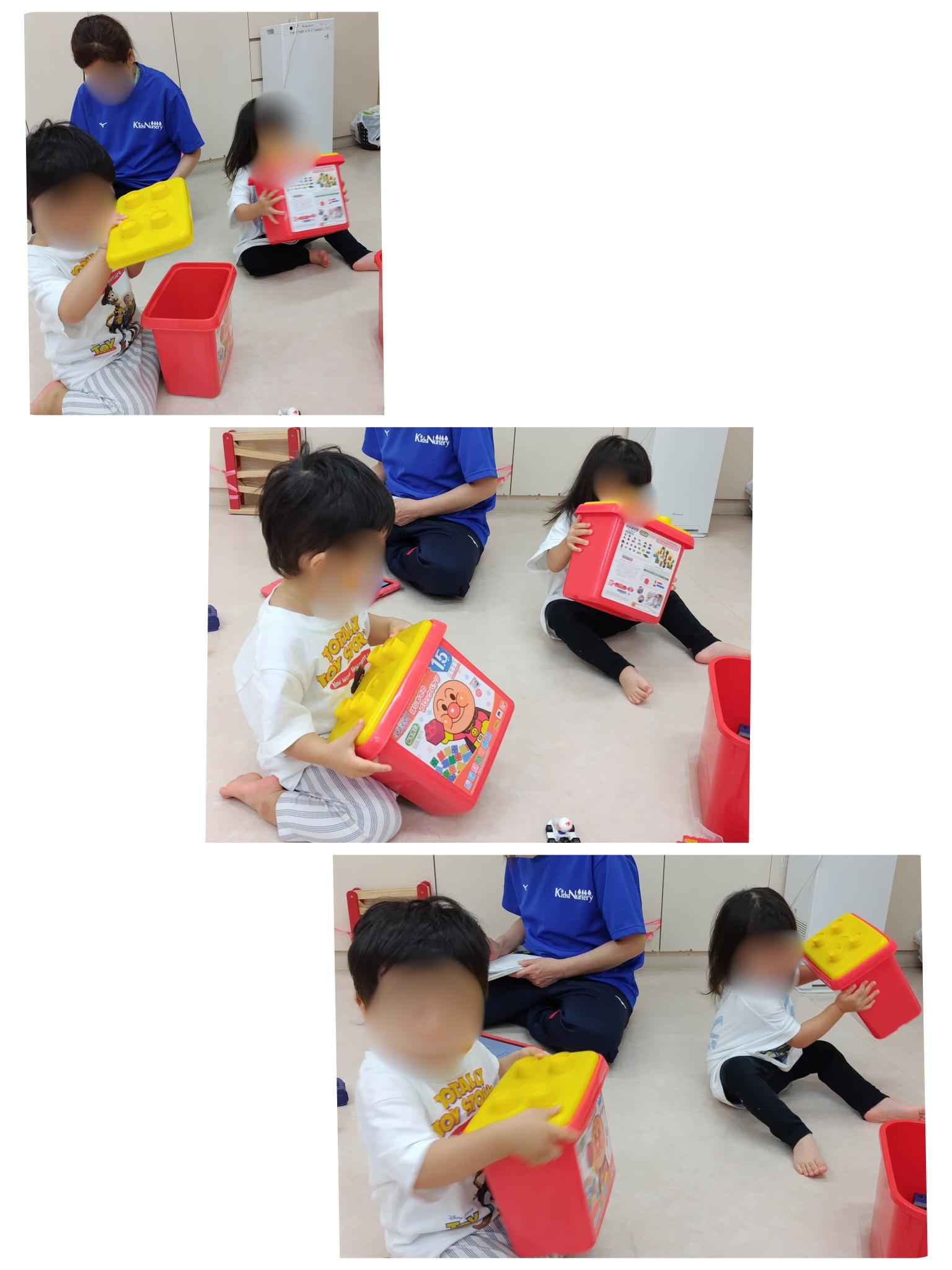③パズルを出すと、パズル本来の遊び方ではなく、パズルを数枚箱に入れて振り、シャカシャカという音を出して楽しむ姿が見られました。